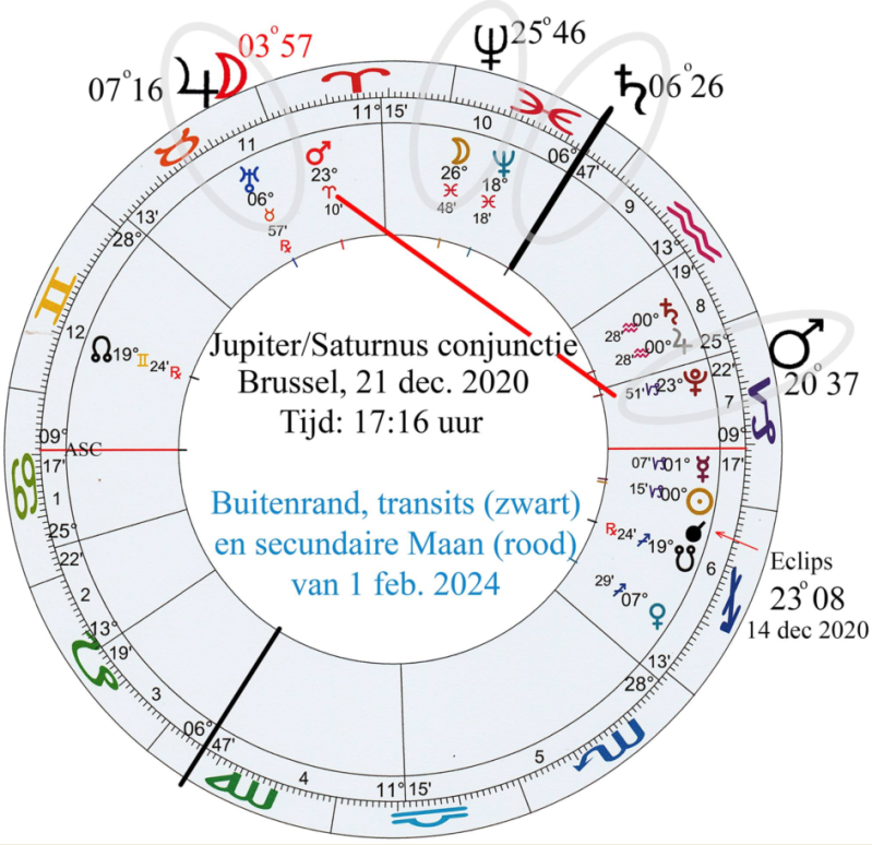 De Jupiter/Saturnus-conjunctie doet zich eens in de twintig jaar voor en vertegenwoordigt daarmee een minitijdperk van twintig jaar. Als we een horoscoop voor dat moment willen maken om enig inzicht te krijgen in wat we hiervan in Europa mogen verwachten, dan stellen we die op voor Brussel, de plaats van waaruit Europa wordt bestuurd (zie afbeelding